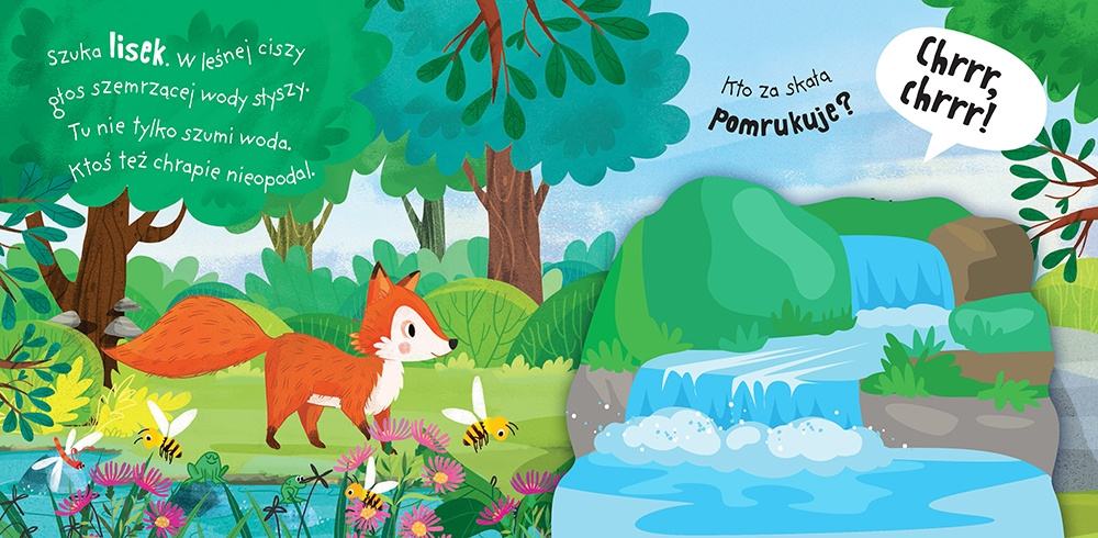 Na każdej stronie czekają krótkie, rytmiczne wierszyki, które pobudzają wyobraźnię i zachęcają do wspólnego czytania. Na końcu znajduje się lusterko – maluch może w nim zobaczyć własne odbicie i stać się częścią zabawy. Książeczka wspiera rozwój mowy, koordynacji oraz zmysłu dotyku i wzroku.