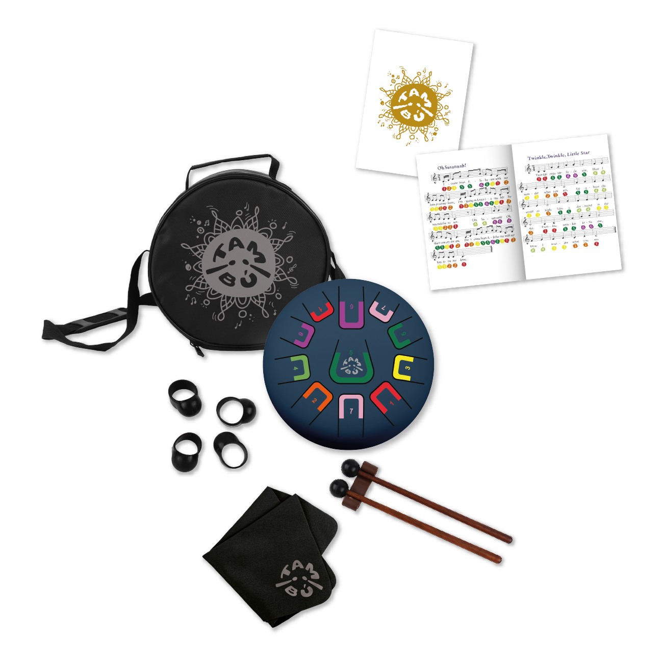 Tambú to innowacyjny tongue drum stworzony dla każdej grupy wiekowej – od dzieci po dorosłych. Gra na nim jest intuicyjna i relaksująca, a system kolorów i numerów sprawia, że pierwsze melodie można tworzyć już po kilku minutach, bez wcześniejszej znajomości muzyki.