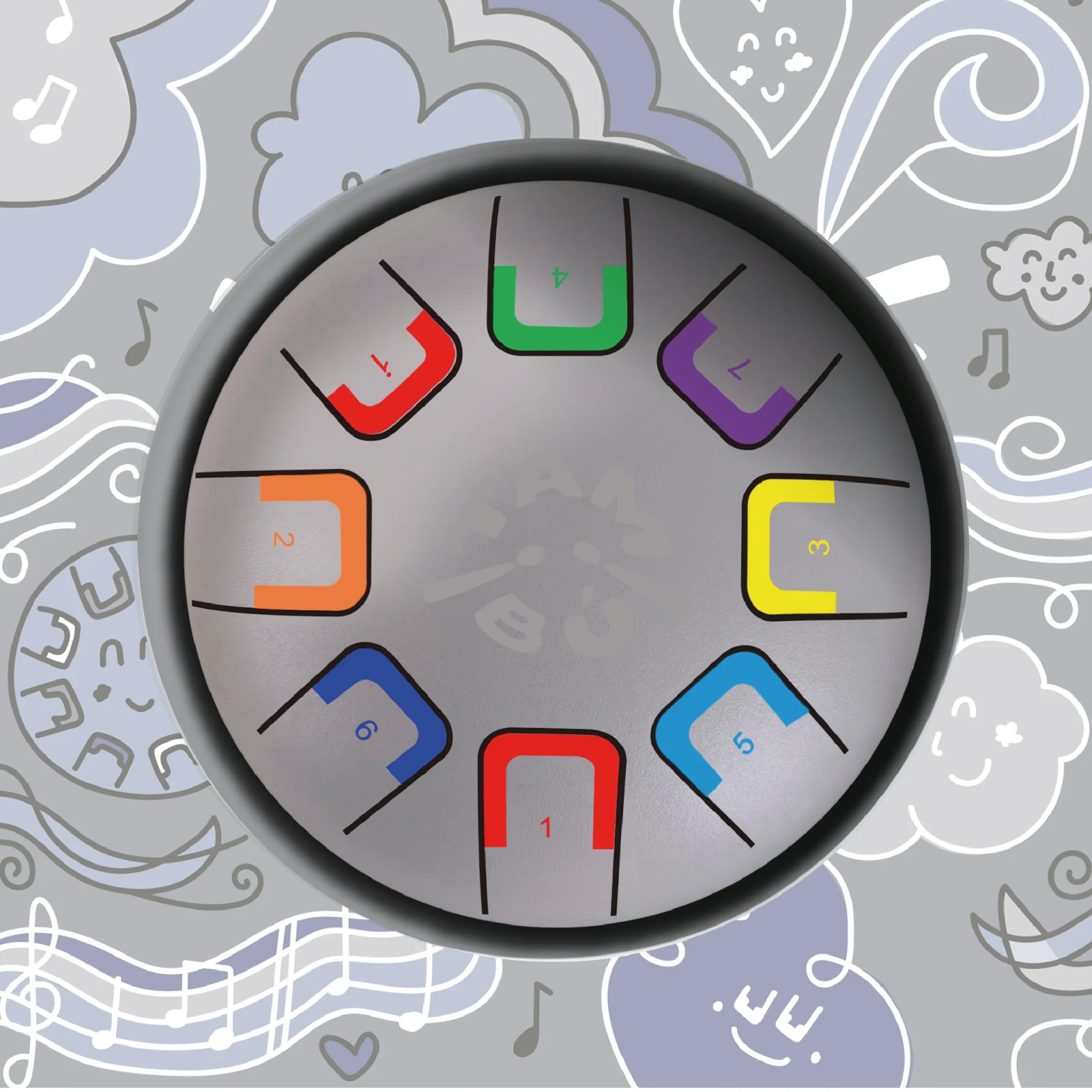 Bębenek językowy Tambu Baby Szary pastell 6” dla dzieci | Instrument muzyczny od 3 lat