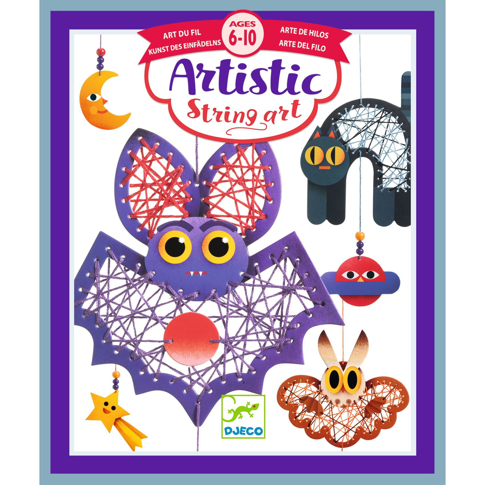 Zestaw artystyczny dla starszych dzieci polegający na stworzeniu 3 wiszących ozdób przedstawiających zwierzęta żyjące nocą. Za pomocą igły o okrągłym zakończeniu należy przewlec sznurki przez wcześniej wycięte otwory i krzyżować je, dopóki ozdoba nie nabierze odpowiedniego kształtu. Na końcu wystarczy dołączyć zawieszkę z drewnianymi koralikami. Zabawa jest bezpieczna, dzięki zaokrąglonej igle. Aktywność rozwija umiejętność koncentracji i zręczność. Do zestawu dołączona jest instrukcja krok po kroku. Wszystkie elementy są wykonane z papieru i kartonu posiadającego certyfikat FSC®.