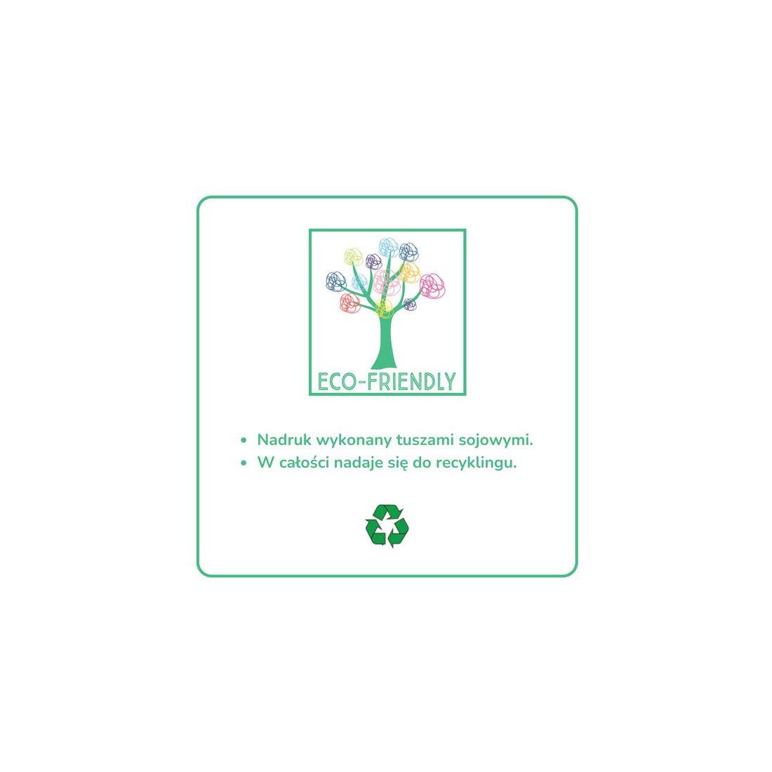 Produkt przyjazny dla środowiska: nadruki wykonane tuszami sojowymi, w pełni nadający się do recyklingu.