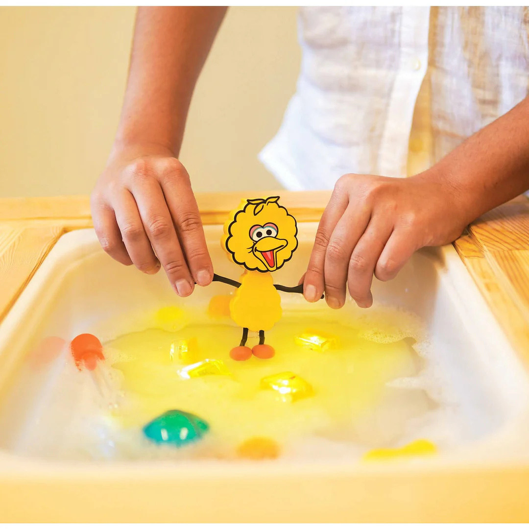 Glo Pals, Postać do kąpieli Wielki Ptak Ulica Sezamkowa - zestaw z dwiema kostkami sensorycznymi świecącymi w wodzie