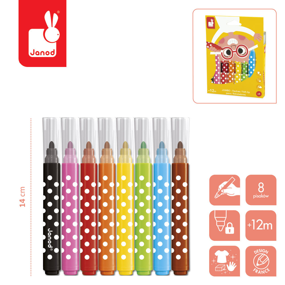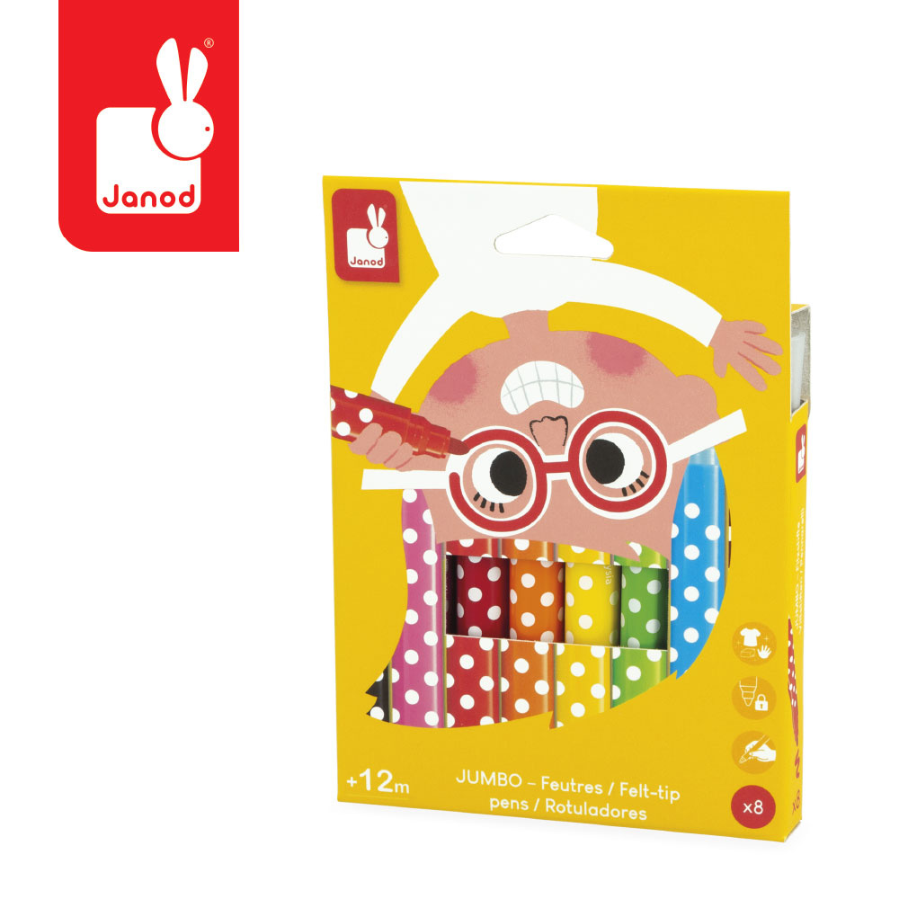 Janod Flamastry Jumbo 8 kolorów 12m+