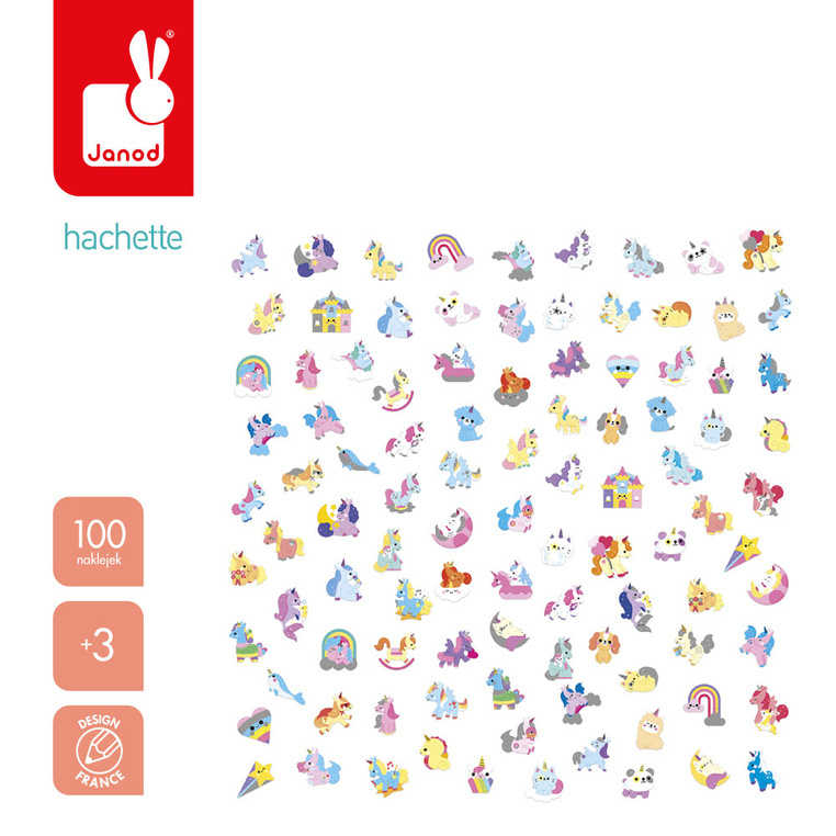 Zestaw naklejek Janod Jednorożce – 100 kreatywnych naklejek dla dzieci od 3 lat