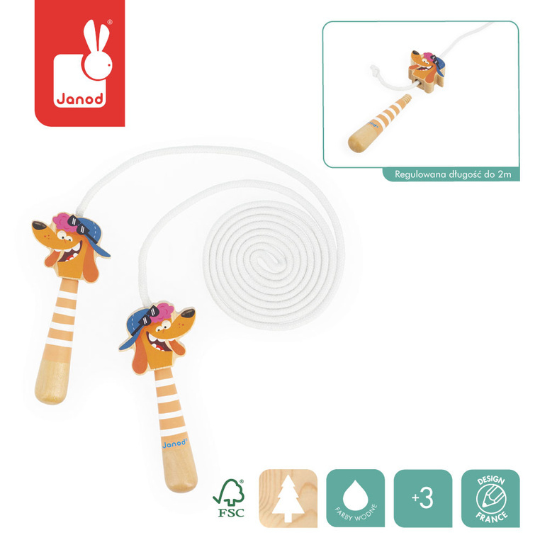 Skakanka z Drewnianymi Rączkami Piesek – Aktywność i Zabawa z Janod