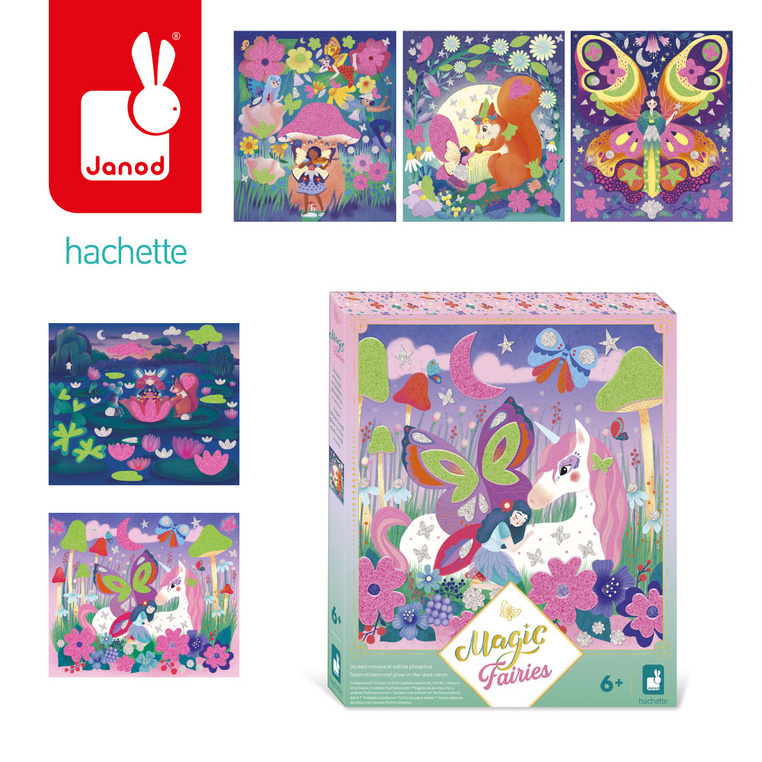 Janod Zestaw kreatywny Naklejki piankowe i fosforescencyjne piaski Wróżki Magic Fairies 6+