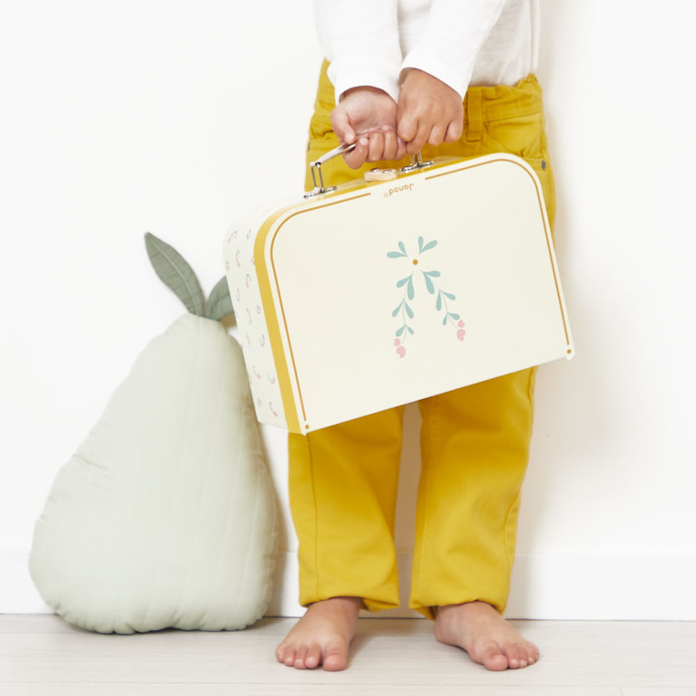 Zestaw jest zapakowany w estetyczne, kartonowe pudełko, co czyni go idealnym prezentem. Całość przechowywana jest w eleganckiej, zdobionej walizce, którą dziecko może łatwo zabrać ze sobą na każdą wyprawę.