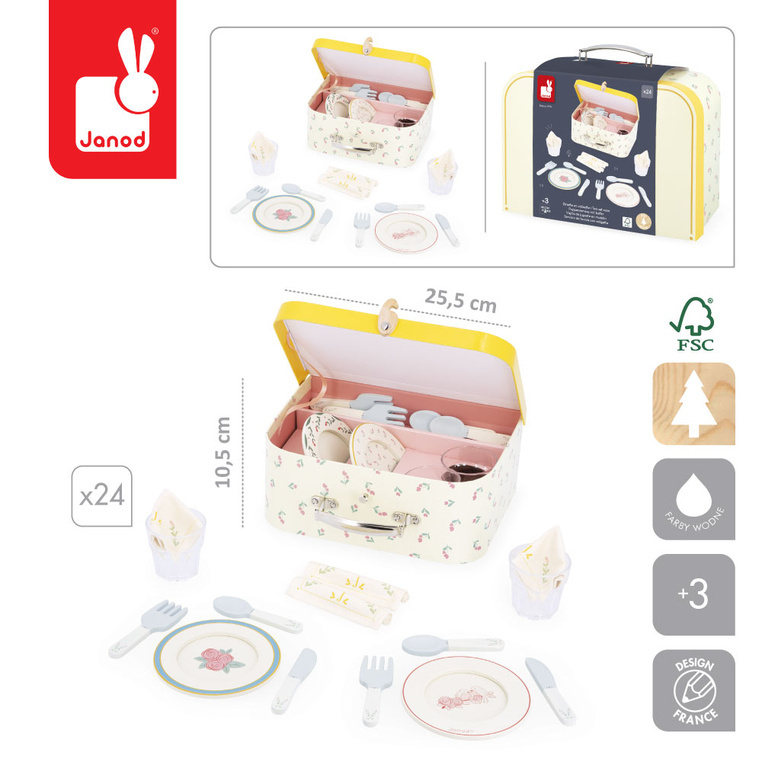 Janod Zestaw piknikowy w walizce z akcesoriami 24 el. Shiny Grandma 3+