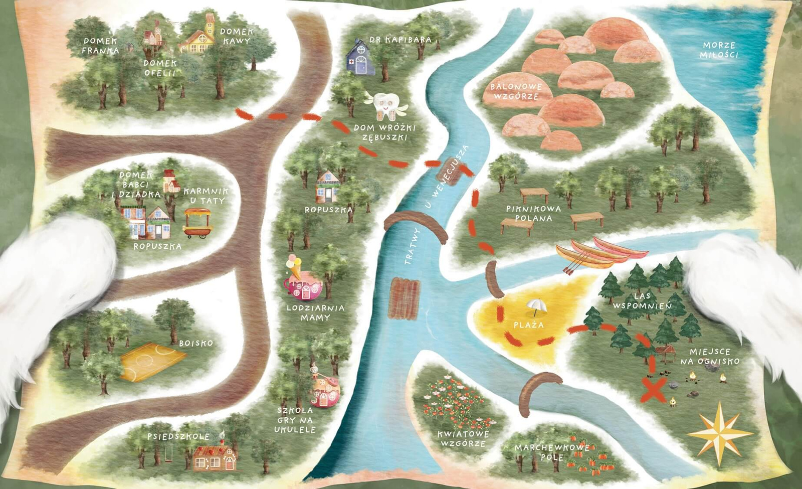 • Dodatek do książkiskładana mapa Krainy domków na drzewie (świetna do wspólnej zabawy po czytaniu).