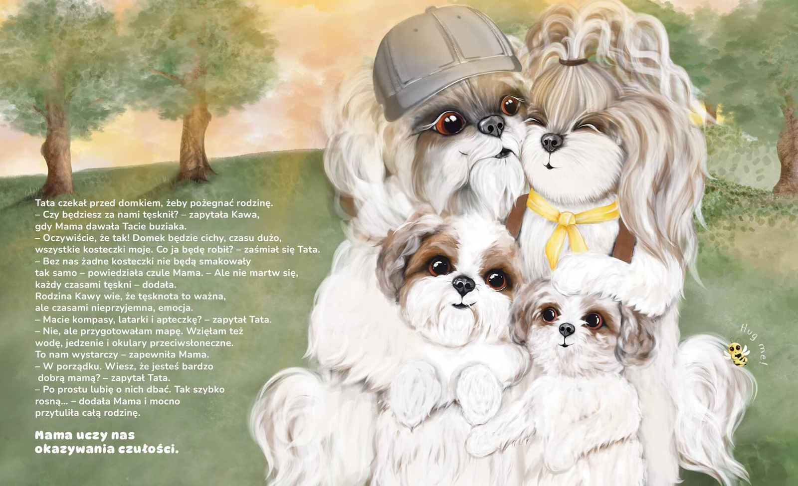 „Kawa z mamą” to pełna czułości historia o relacji, w której dziecko czuje się bezpiecznie – nawet wtedy, gdy na chwilę się oddali. Kawa i jej przyjaciele wybierają się z mamami na wycieczkę, a po drodze wydarza się coś, co uruchamia ważne emocje i potrzebę wołania „prosto z serca”. To opowieść o zaufaniu, uważności i tym, że głos mamy jest dla dziecka kotwicą – w domu, w lesie i w każdej nowej sytuacji.