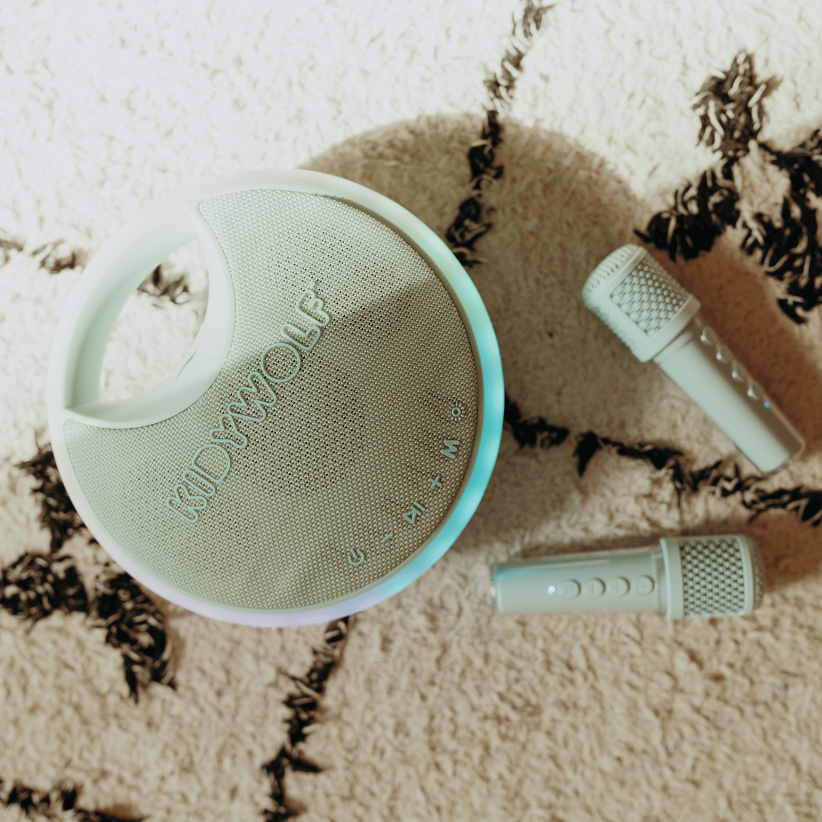 KIDYKARAOKE to nowoczesny zestaw karaoke dla dzieci od marki Kidywolf, który przekształca każdy pokój w scenę koncertową! Wyposażony w wysokiej jakości głośnik, dwa mikrofony bezprzewodowe i efektowne podświetlenie LED, zapewnia godziny kreatywnej zabawy i muzycznej radości. Zdobywca tytułu Zabawka Roku 2024 w Belgii!