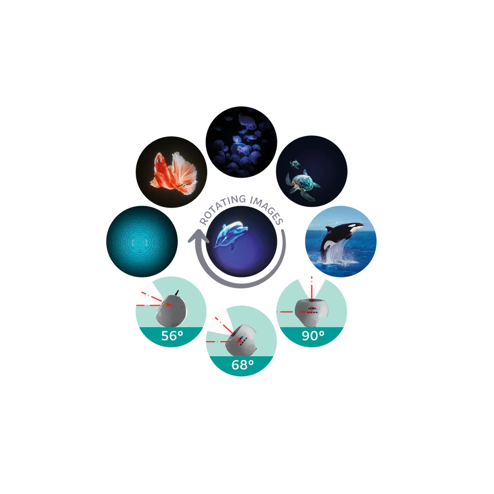 Projektor Kidystar to połączenie relaksu i edukacji. Łagodne światła tworzą kojące animacje, a załączony ilustrowany przewodnik po świecie oceanów wspiera ciekawość i naturalną chęć poznawania świata.