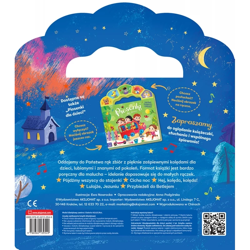 - Książka dźwiękowa z kolędami 0–3 lata – 5 pięknych melodii, ilustracje i teksty do wspólnego śpiewania. Idealny prezent świąteczny!