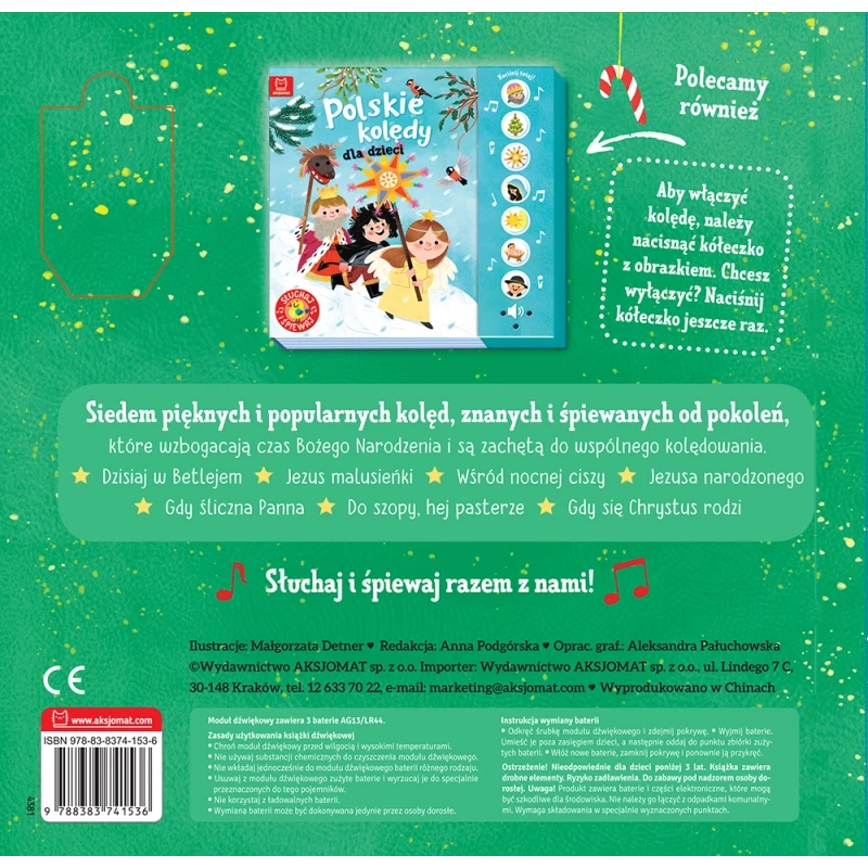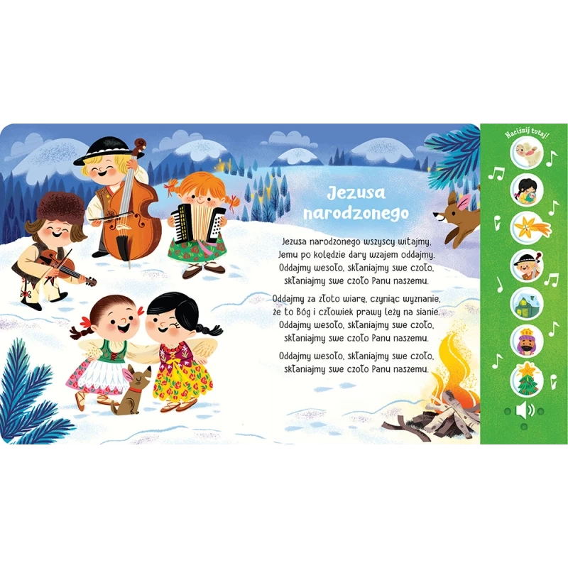 - Kolędy dla dzieci 0–3 lata – książka dźwiękowa z 7 nagraniami i ilustracjami. Wspólne śpiewanie i magia świąt w jednym!