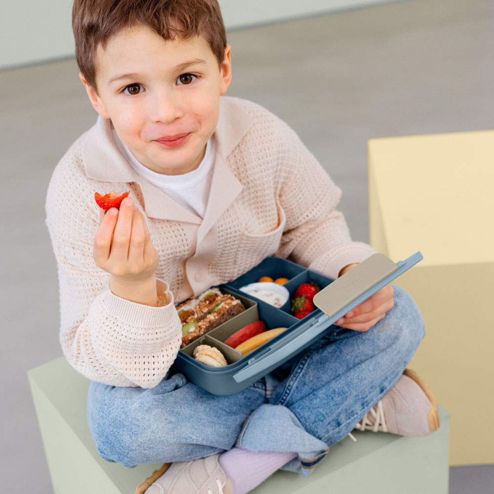 Lunchbox Bento marki Lässig został zaprojektowany z myślą o dzieciach. Posiada aż 6 przegródek, w tym ruchomą i wyjmowany pojemnik, co umożliwia oddzielenie różnych typów jedzenia. Dzięki silikonowej uszczelce jest odpowiedni także na płynne produkty, takie jak sosy czy jogurt. Szeroki klips chroni zawartość przed przypadkowym otwarciem.