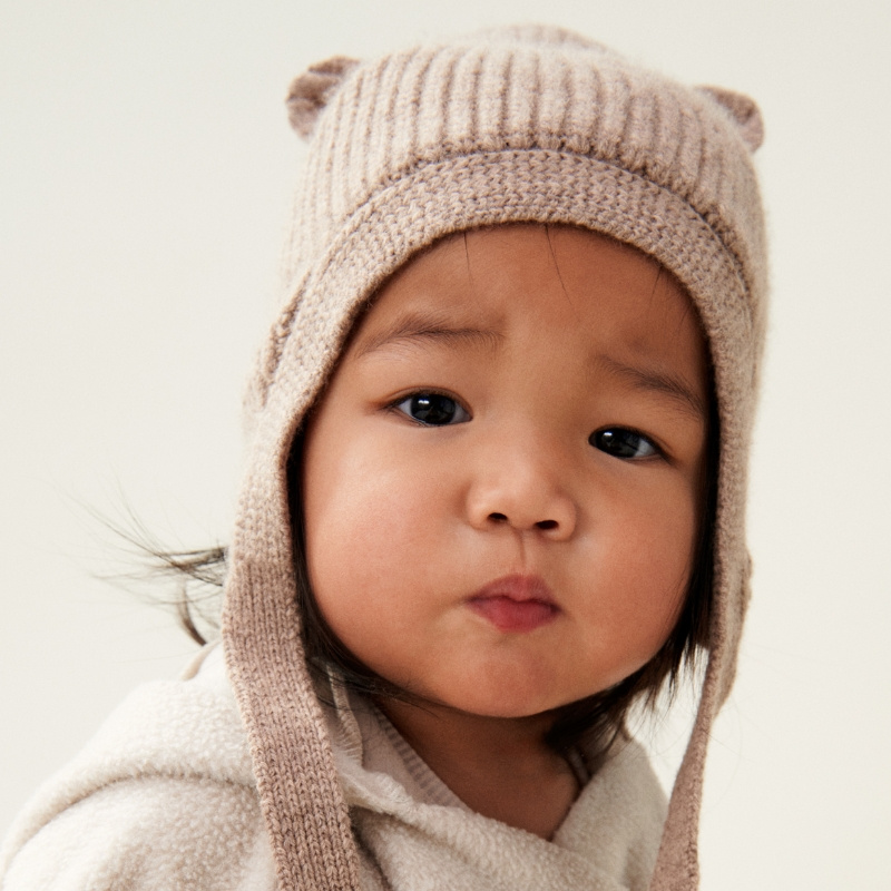- Miękka czapeczka Liewood z uszkami z wełny merino 50% i bawełny 50%. Ciepła, bezpieczna i urocza. Idealna na jesień i zimę dla niemowląt.