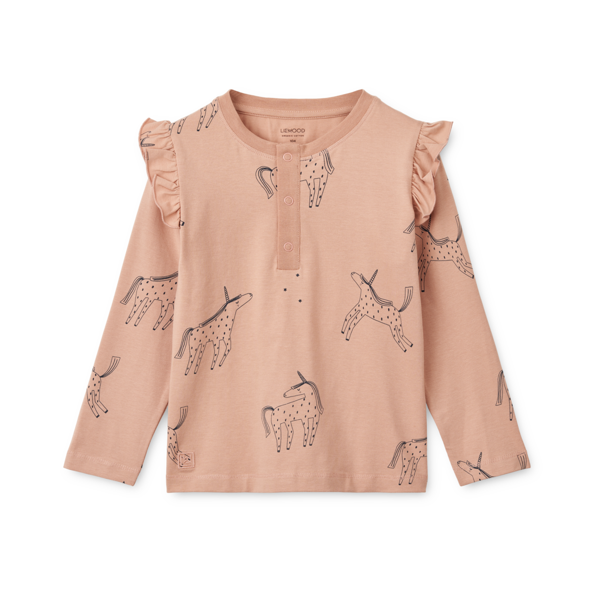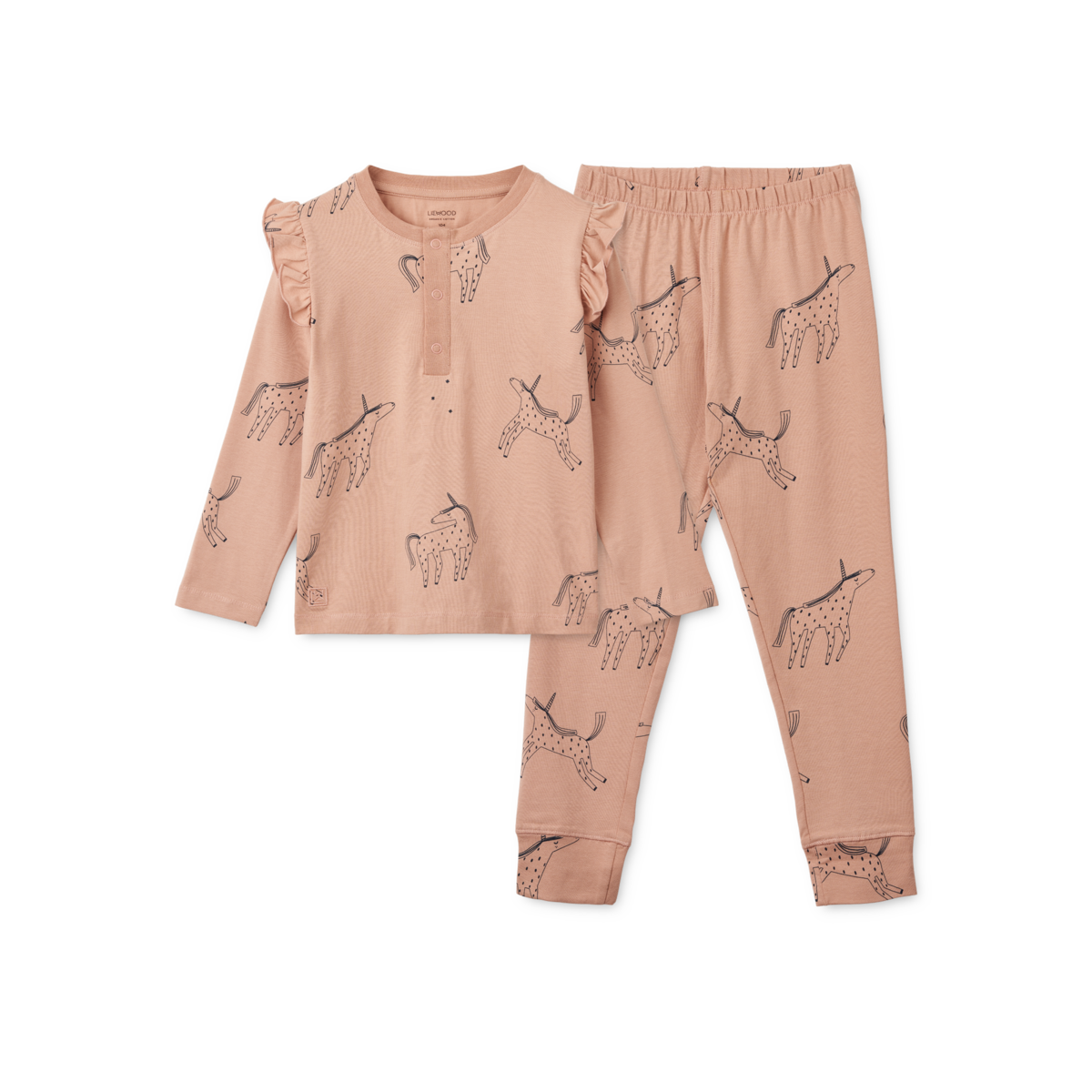 Piżama Liewood Wilhelm zachwyca subtelnymi falbankami na ramionach i uroczymi nadrukami, które nadają jej dziewczęcego uroku. Utrzymana w stylu skandynawskiego minimalizmu, łączy prostotę z elegancją – idealna zarówno do codziennego snu, jak i jako wyjątkowy prezent dla dziewczynki.