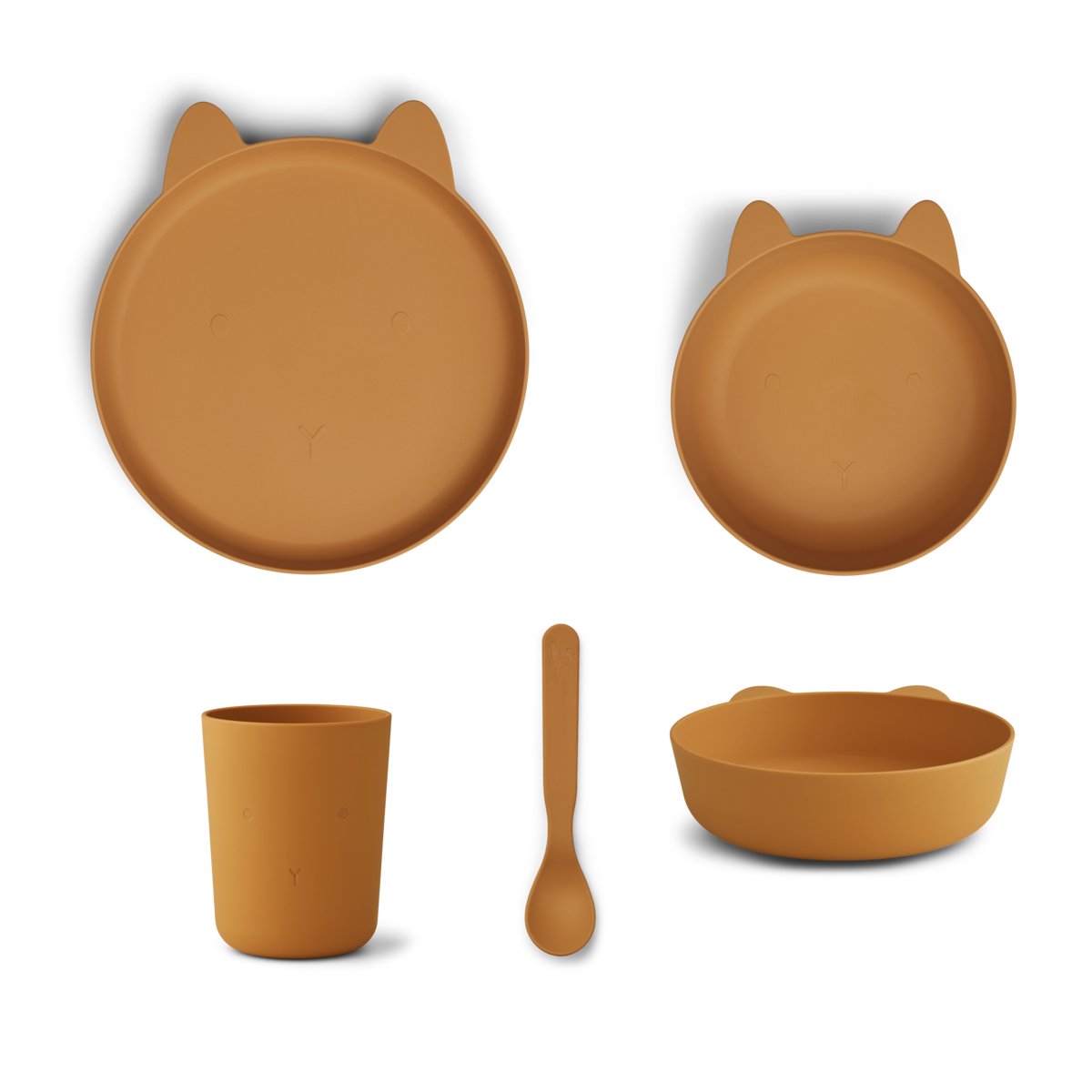 - Zestaw zawiera talerz, miskę, kubek i łyżkę. Idealny do rozszerzania diety i świetny prezent dla malucha.