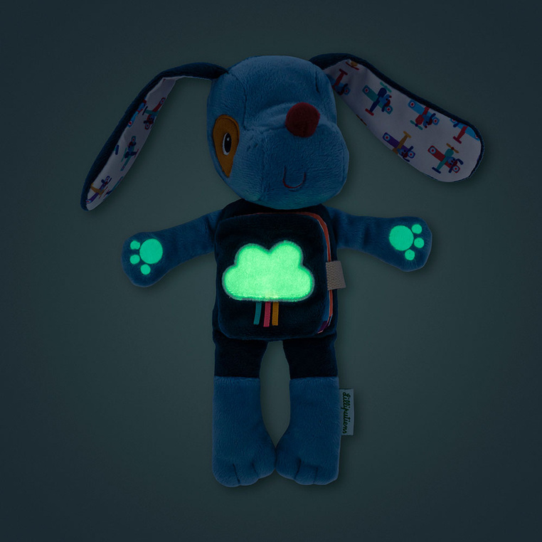 Tak, elementy – chmurka i wnętrze łapek – świecą w ciemności, delikatnie rozpraszając mrok i dając dziecku poczucie bezpieczeństwa.