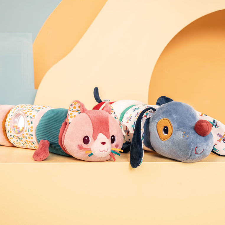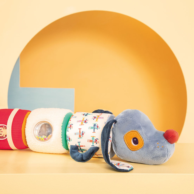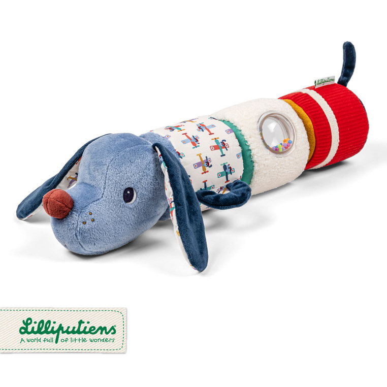- Miękki wałek sensoryczny Lilliputiens Piesek Jules 6m+. 4 elementy z dźwiękami i fakturami, rozwija zmysły i motorykę, idealny na prezent.