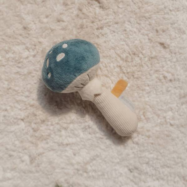Grzechotka w kształcie grzybka została zaprojektowana specjalnie dla małych rączek. Jej miękka faktura i lekka konstrukcja sprawiają, że dziecko bez trudu ją chwyta i potrząsa, czerpiąc radość z dźwięków oraz ucząc się zależności przyczyna-skutek. Produkt idealnie wpisuje się w estetykę i funkcjonalność kolekcji Forest Friends.