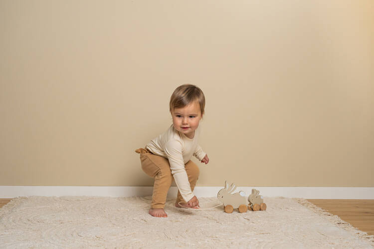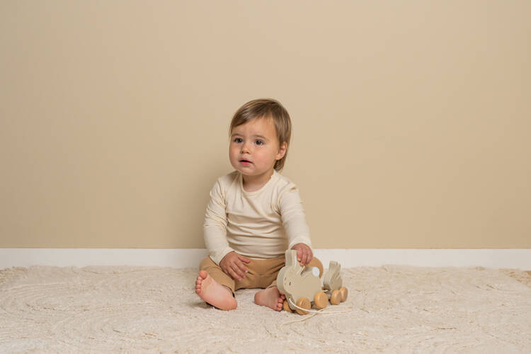 Zabawka jest wykonana z drewna z certyfikatem FSC i pomalowana bezpiecznymi farbami na bazie wody. To doskonały pomysł na prezent, a także świetne uzupełnienie dla innych produktów z kolekcji Baby Bunny od Little Dutch.