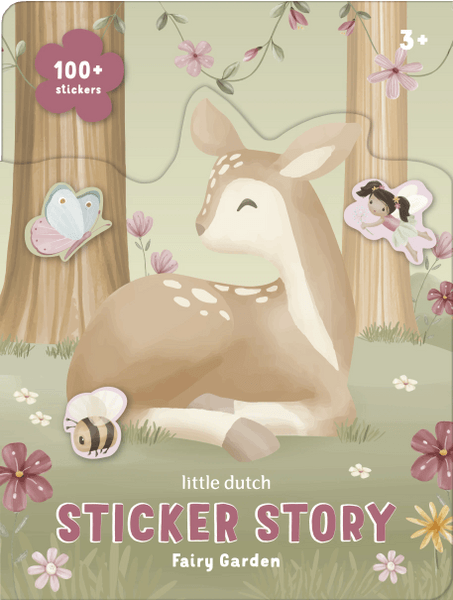 Książeczka z naklejkami dla dzieci Fairy Garden od Little Dutch to bajkowa podróż do ogrodu pełnego wróżek, kwiatów, motyli i magicznych stworzeń. W zestawie znajduje się ponad 100 kolorowych naklejek oraz 2 strony rysunkowe, które zachęcają do twórczej zabawy i tworzenia własnych historii.