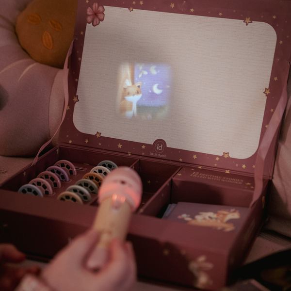 Latarka-projektor z bajkami Róz od Little Dutch to fascynująca zabawka dla dzieci, które uwielbiają słuchać i tworzyć własne historie.