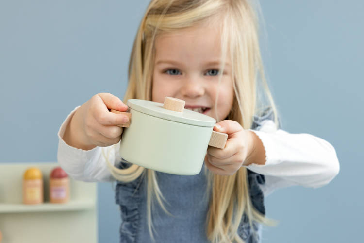 Mini Kuchnia FSC od Little Dutch. Dzięki tej drewnianej mini kuchni możesz zamienić każde miejsce w kącik kuchenny! Zawiera palnik i zlewozmywak. W zestawie znajduje się również rondelek, patelnia, jajko, dwie łopatki, solniczka i pieprzniczka. Twój maluch pokocha gotowanie. Bardzo kompaktowy rozmiar, pozwala na ustawienie kuchenki w wolnym miejscu i łatwe jej przenoszenie. Świetna zabawa, pobudza wyobraźnię i umiejętność odgrywania ról. Idealnie sprawdzi się jako prezent dla małego szefa kuchni.