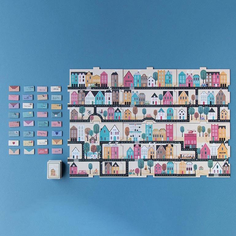 - Gra zawiera: 80 kart ze wskazaniami dostarczenia listów, 40 listów, 8 puzzli do ułożenia miasta