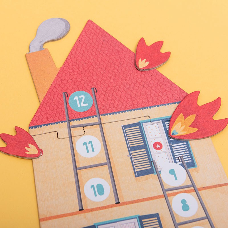 dotrze do miejsca numer 12 na planszy, może podnieść kota (figurka strażaka