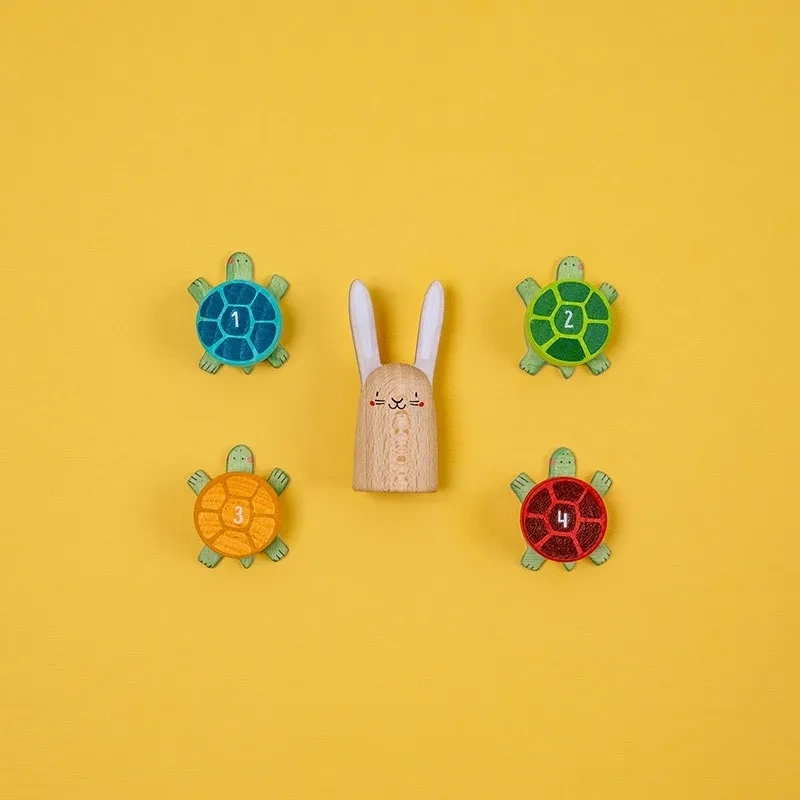 - Ucz współpracy i cierpliwości! Gra kooperacyjna dla dzieci od 5 lat, inspirowana bajką o żółwiu i zającu.