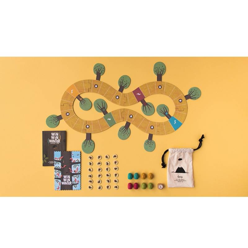 „Win Win Winter” to gra, w której wiewiórki w lesie zbierają zapasy na zimę. Gracze muszą przejść przez ścieżkę pełną wyzwań, zbierając żołędzie i umiejętnie poruszając swoimi wiewiórkami. Gra wymaga strategii i sprytu, aby zebrać jak najwięcej żołędzi i dotrzeć do swojej dziupli, zanim skończą się zapasy. Zasady są proste, ale każda tura stawia przed graczami nowe wyzwania.