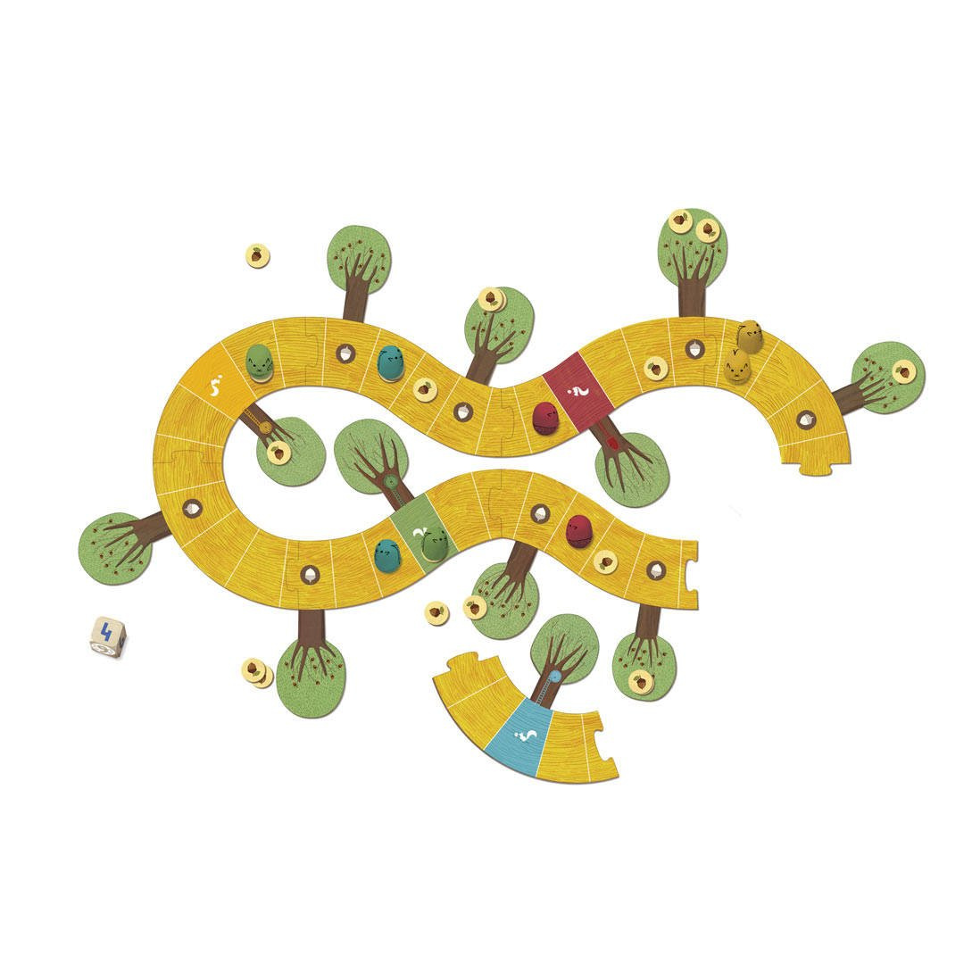 - Rzucaj kostką, aby przesunąć wiewiórki po planszy.