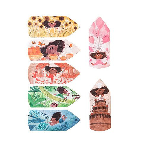- Do ułożenia jest 21 elementów przez najmłodsze dzieci . Układanka składa się z 7 kolorowych kredek do ułożenia lub z 7 przygód przesympatycznej dziewczynki. Puzzle są dwustronne.