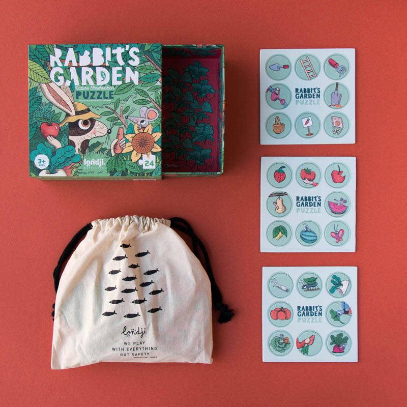 24 elementy puzzli wykonanych jest z wytrzymałego, utwardzonego kartonu.