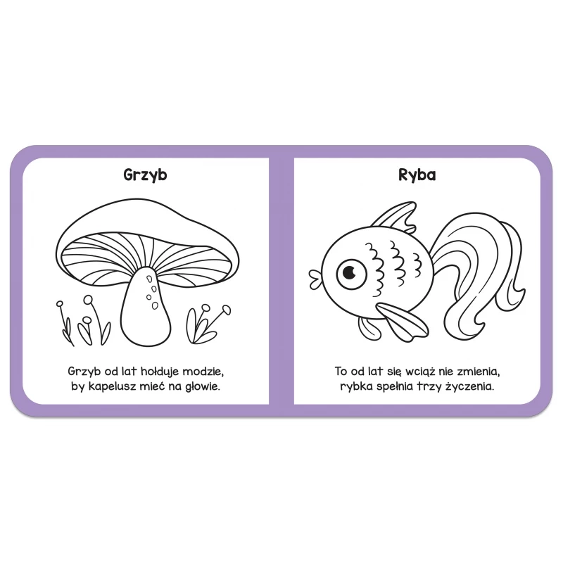 • Książeczka do kolorowania – każdemu obrazkowi towarzyszy krótki, rymowany wierszyk.