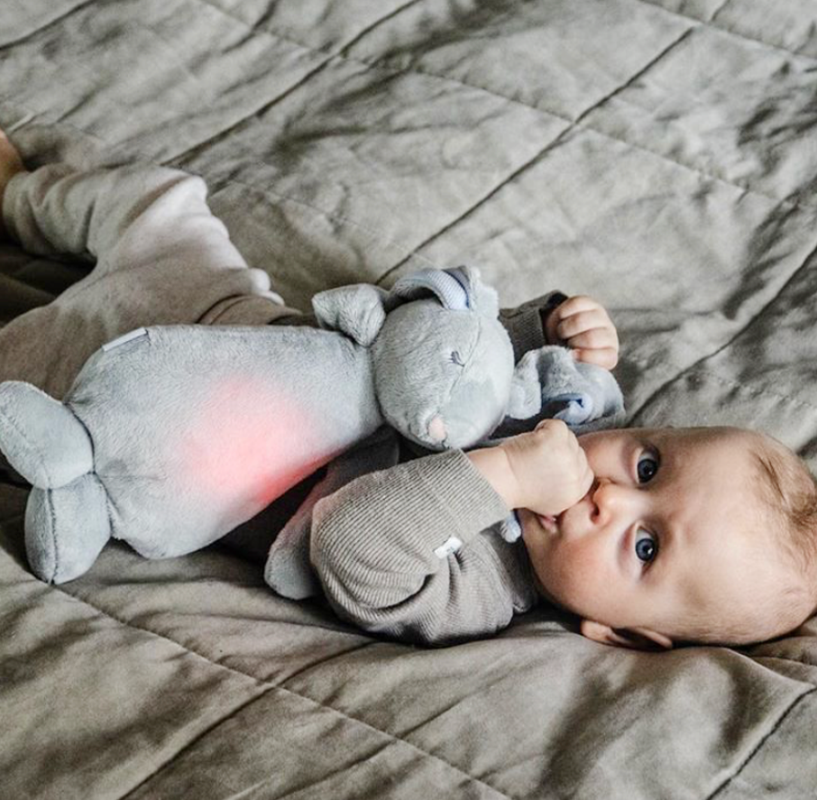 Szumy króliczka MOONIE, wygłuszają dźwięki z otoczenia, dzięki czemu, codzienne, domowe hałasy nie wybudzają maluszka ze snu.