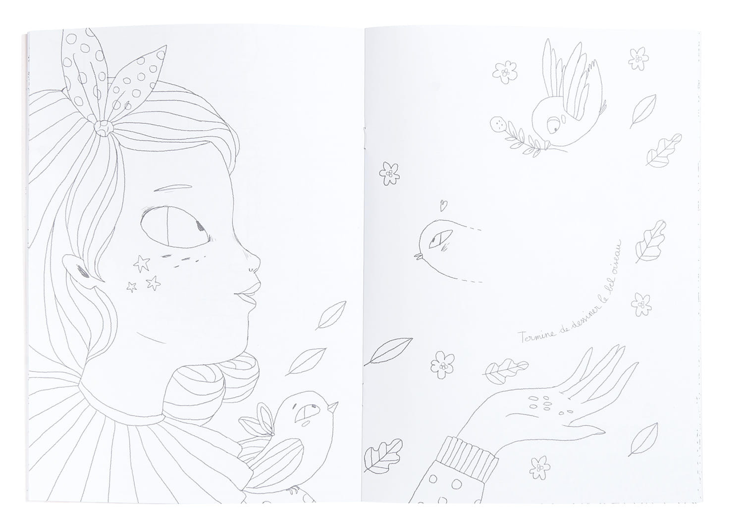 Kolorowanka autorstwa Lucille Michieli. Do pokolorowania są motywy kwiatowe i krajobraz Paryża na 36 stronach.