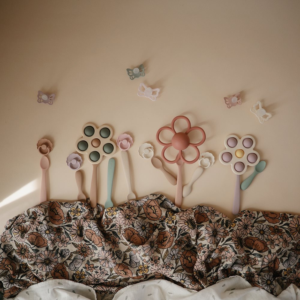 Mushie Gryzak i grzechotka Daisy – silikonowy gryzak sensoryczny dla niemowląt 3m+