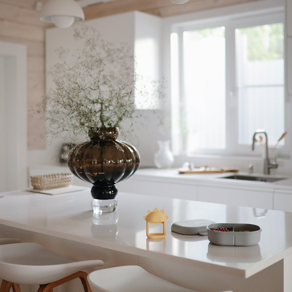 Gryzak Mushie No-Drop Sun wykonano w 100% z silikonu spożywczego → materiał nietoksyczny, wolny od BPA, PVC i ftalanów → bezpieczny do gryzienia i ssania już od 3. miesiąca życia.