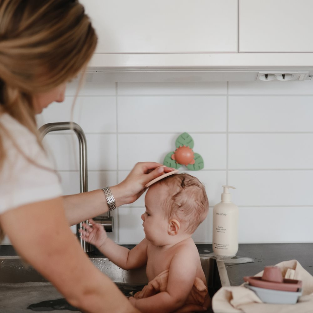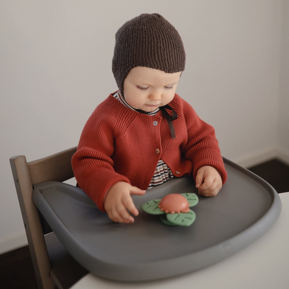 Elementy wykonane z silikonu spożywczego są przyjemne w dotyku → dziecko poznaje różne faktury → wspierana jest integracja sensoryczna bez przebodźcowania.