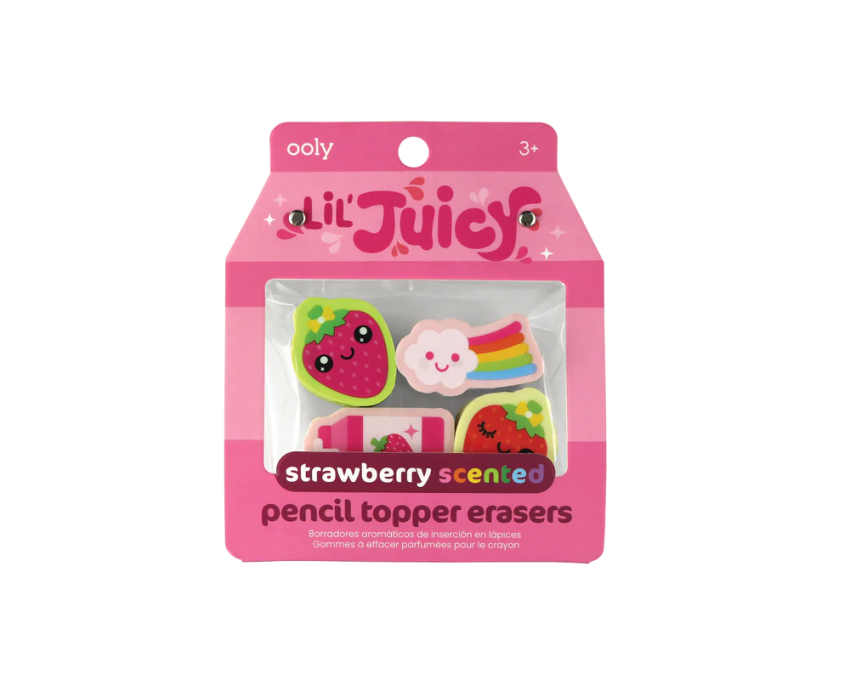 Ooly Gumki Na Koniec Ołówka, Pachnąca Owocami Lil Juicy - Truskawka - zestaw 4 szt.