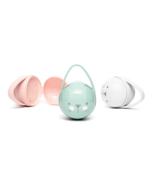 Opakowanie na dwa smoczki uspokajające. Etui składa się z dwóch komór, które można odłączyć od siebie zabierając ze sobą na wyjście wyłącznie jeden pojemnik na jeden smoczek. Produkt posiada funkcjonalny uchwyt dzięki, któremu możemy przymocować go do wózka, fotelika lub torby.