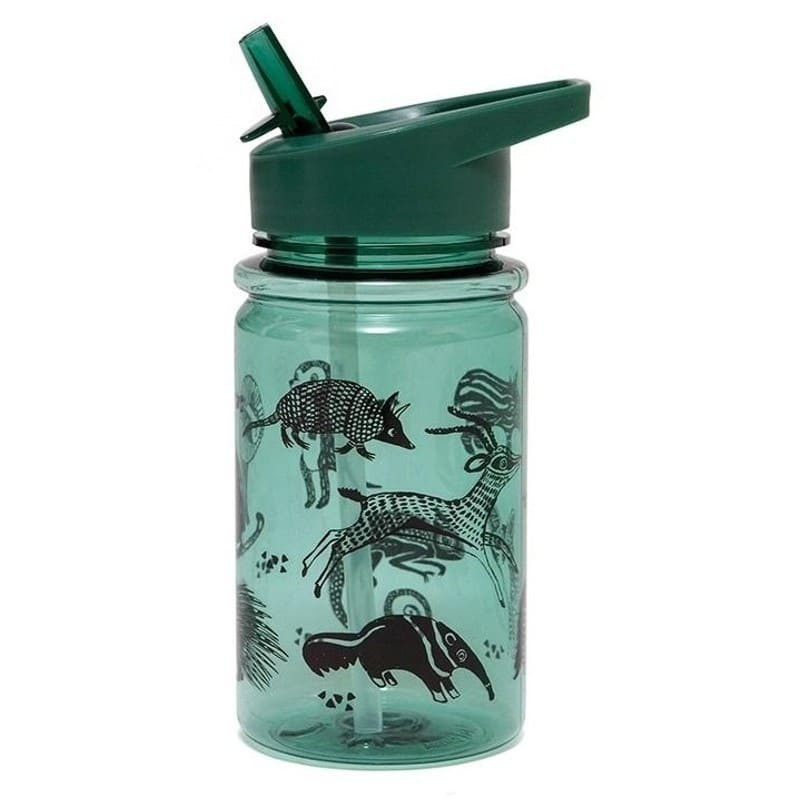 Petit Monkey - Bidon transparentny ze składanym ustnikiem i słomką Black Animals Salie