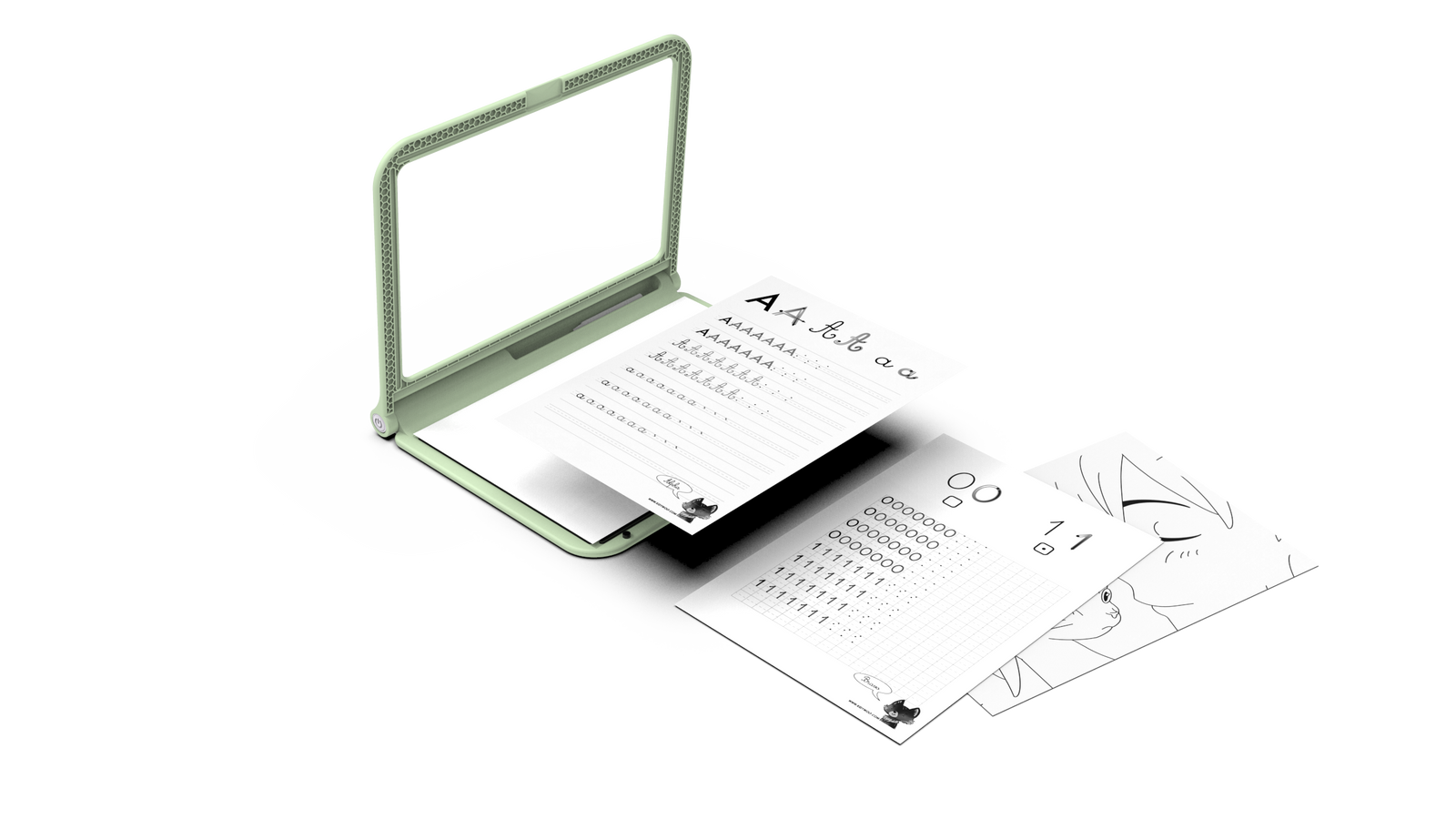 - Przód: tablet do odtwarzania rysunku na papierze z miękkim, białym ekranem LED
