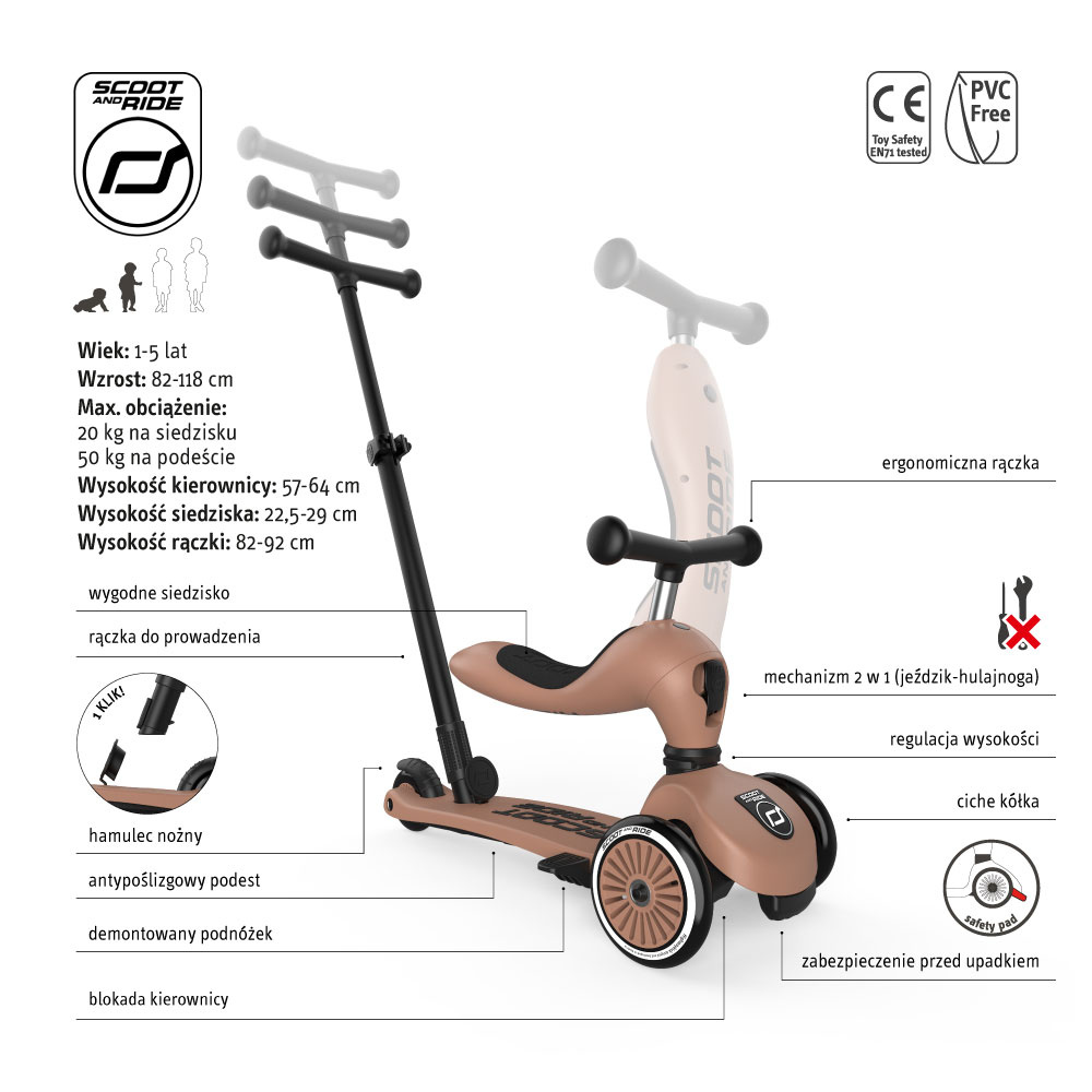 SCOOTANDRIDE Highwaykick 1 Push and Go Jeździk I hulajnoga 2w1 Mocha