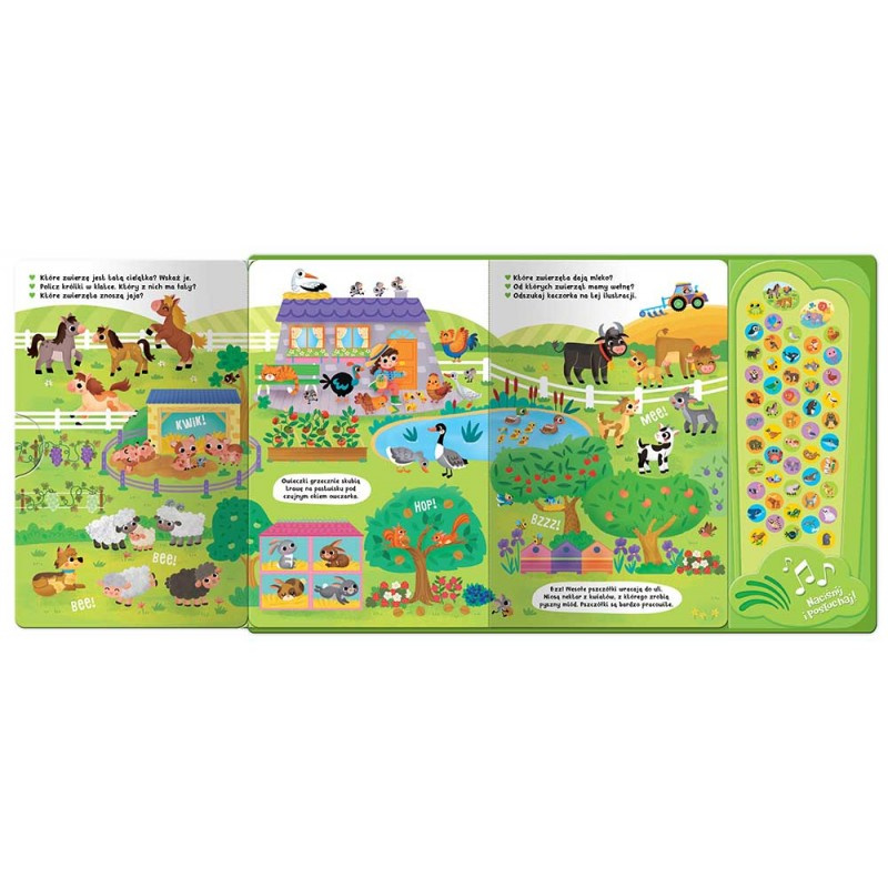 Ponad 50 realistycznych odgłosów – od krowy, konia i kury, po lwa, delfina i ptaki leśne.