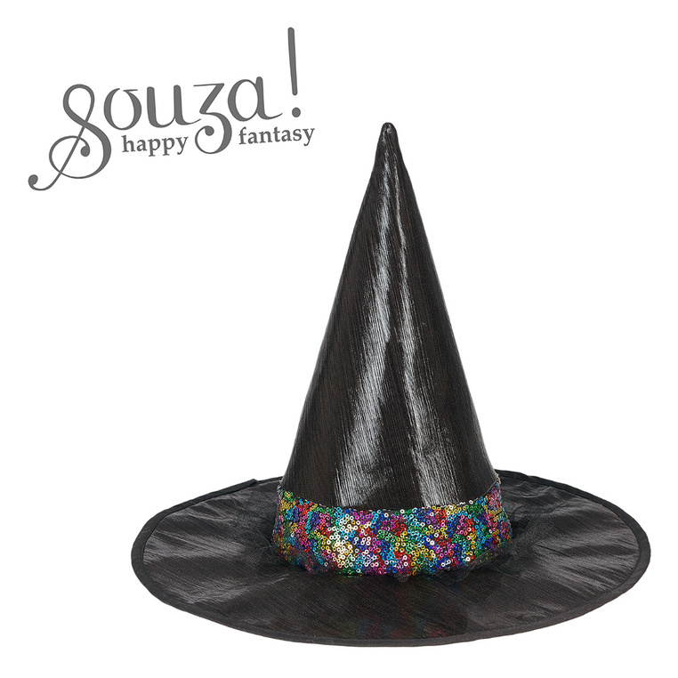 - Souza! Kapelusz czarownicy Agatha – czarny, stożkowy, z cekinami i regulacją 49–56 cm. Dla dziewczynek 4–10 lat. Idealny dodatek do kostiumu i prezent.
