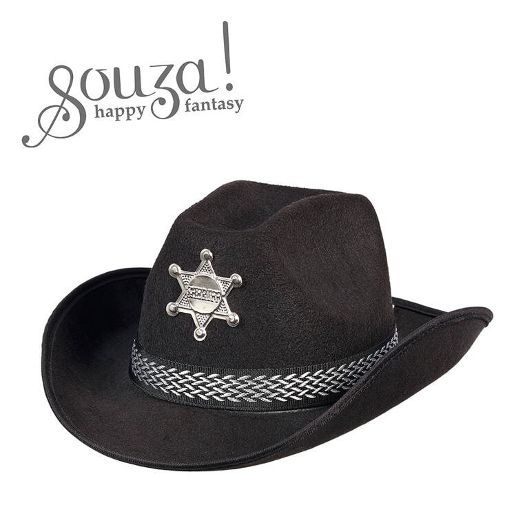 - Souza! Kapelusz kowbojski Austin – czarny z haftowanym pasem i gwiazdą szeryfa. Dodatek do kostiumu kowboja dla dzieci 3–7 lat. Idealny na bal i prezent.